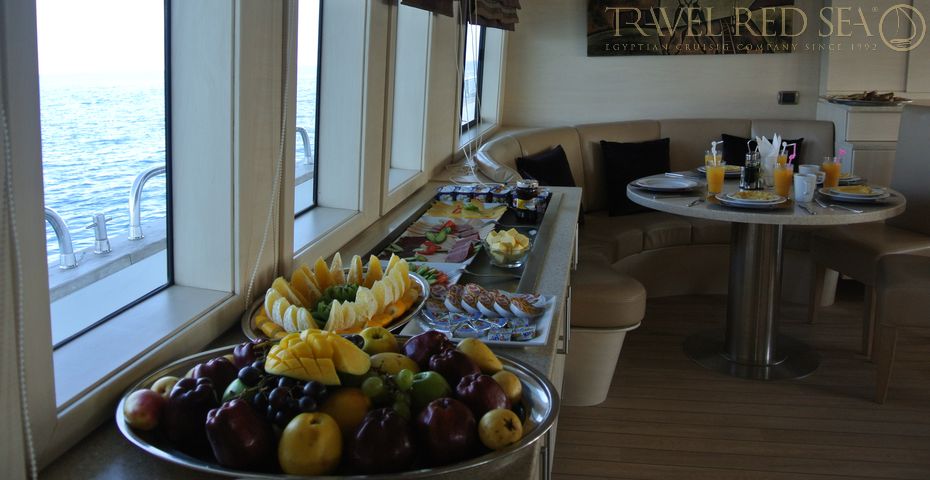 Let us care of your unforgettable dive-vacation. We will meet you in the airport and bring to the boat, accommodate in beautiful rooms and prepare for a cruise. Your dive plan is organized by the team of 3 caring, experienced, multi-language PADI MSDT guides for more comfortable and safer diving. On request they can teach all specialities and all levels dive courses during safari. Health officer and Cruise Manager onboard ensure that everything works as a clock. An array of interesting diving itineraries in Egyptian and Sudanese Red sea are waiting for you to choose from. You enjoy your fine foods and entertainments: vitamins full breakfasts, Al fresco dinners with freshly caught fish, barbecue parties on the islands, Bedouin nights with water-pipe and oriental dance, pure oils massage, warm jacuzzi, yoga sessions at sunsets, games, relaxation, fun, luxury yacht - everything is there to make you happy.